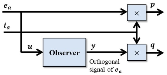 where is the original signal (the one to be measured), is the fictitious signal that is orthogonal to and is the fundamental frequency of Moreover, and are constants that are calculated from the characteristic equation of the state observer (5) [].