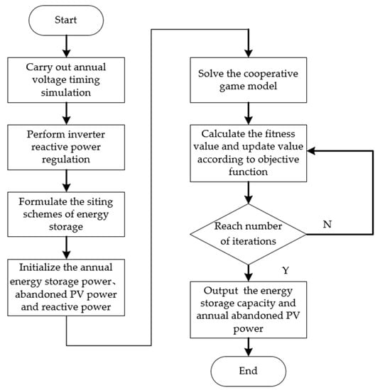 - Characteristic function: the sum of energy storage capacity of the nodes and the annual abandoned PV power are the lowest in Equation (5).where is the number of nodes installed for energy storage, is sum of energy storage capacity and the annual abandoned PV power of node , and is the reactive power at the time of node .