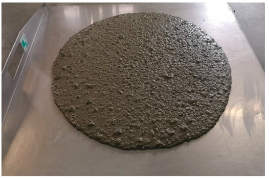 The test results of self-compacting concrete mixtures are presented in Table 11. No signs of segregation of components were observed (Figure 11). The consistency, viscosity and flow rates were obtained in accordance with the requirements for self-compacting concrete mixtures.