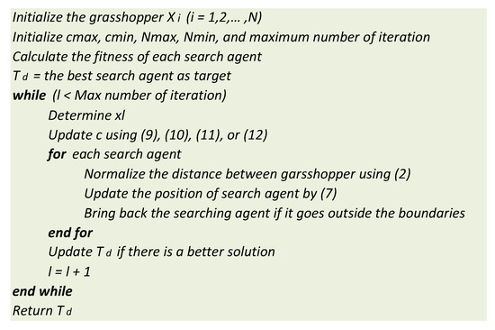 2.1. Review of Grasshopper Optimization Algorithm