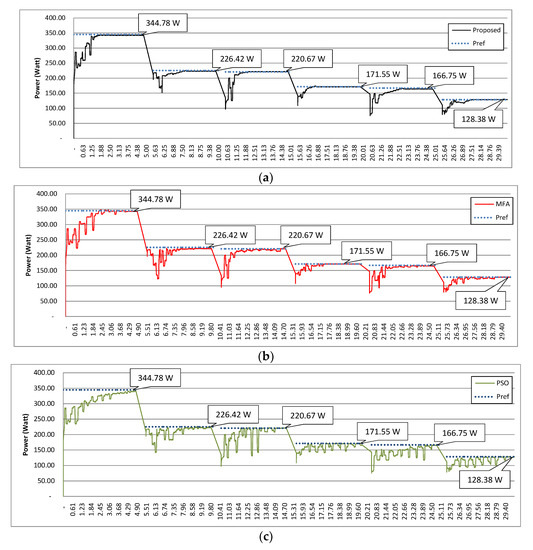 - Biabani, M.A.K.A.; Ahmed, F. Maximum power point tracking of photovoltaic panels using perturbation and observation method and fuzzy logic control based method. In Proceedings of the 2016 International Conference on Electrical, Electronics, and Optimization Techniques (ICEEOT), Tamil Nadu, India, 3–5 March 2016; pp. 1614–1620. [Google Scholar]