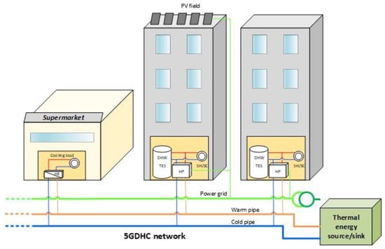 - Revesz, A.; Jones, P.; Dunham, C.; Davies, G.; Marques, C.; Matabuena, R.; Scott, J.; Maidment, G. Developing novel 5th generation district energy networks. Energy 2020, 201, 117389. [Google Scholar] [CrossRef]