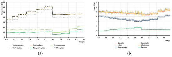 - is the electricity consumption of the substation during the DHW operation as a sum of the consumption of the heat pump compressor () and the hydraulic pumps ().