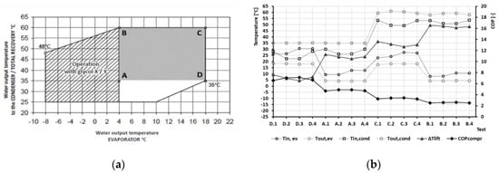 - The outlet temperature at the condenser () must be lower than 57.3 °C to avoid an alarms for refrigerant high temperature (max 118 °C) and high pressure (max 40 bar at the compressor outlet). This critical condition can be reached during the WSHP operation around points B and C of Figure 6a.