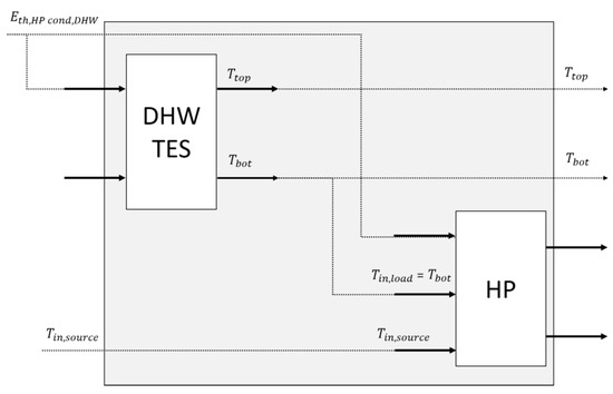 - is the thermal energy delivered by the on-off WSHP to the DHW TES in one control time step (4 kWhth) and represents the control input provided according to the results of the MPC algorithms during the on-line simulation (see Section 2.5).