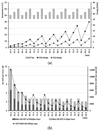 - two values for the DHW TES volume identified by a number that follows the letter, equal to 0.5 m3 (1) and 1 m3 (2), respectively; and