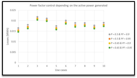 Power factor control depending on the active power generated: Losses.