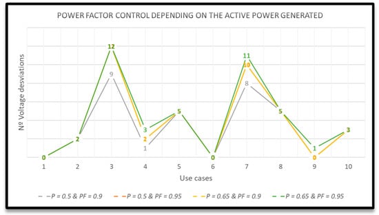 Power factor control depending on the active power generated: Voltage deviations.