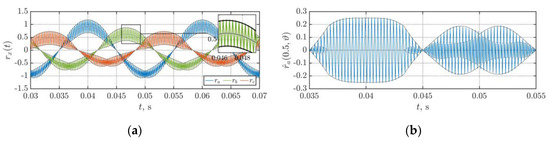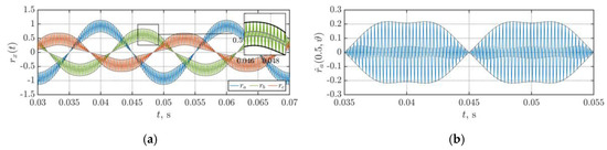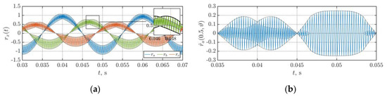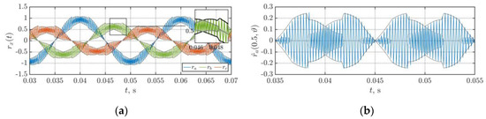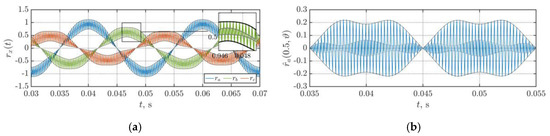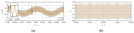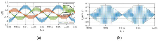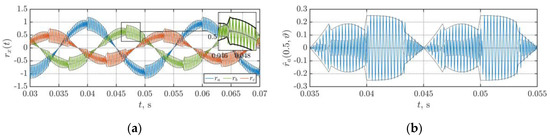 Moreover, since both Equations (12) and (13) are unipolar, one could claim that both injections do not share the advantage of the half-wave symmetry properties. Therefore, the modulating signals are not half-wave symmetric as well. This last statement suggests already that the current ripple waveform must be studied on the whole fundamental period rather than only on half-cycle (as typically done in most of the injections). However, by examining Equation (14), it is possible to state that (for phase a):
