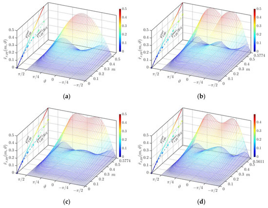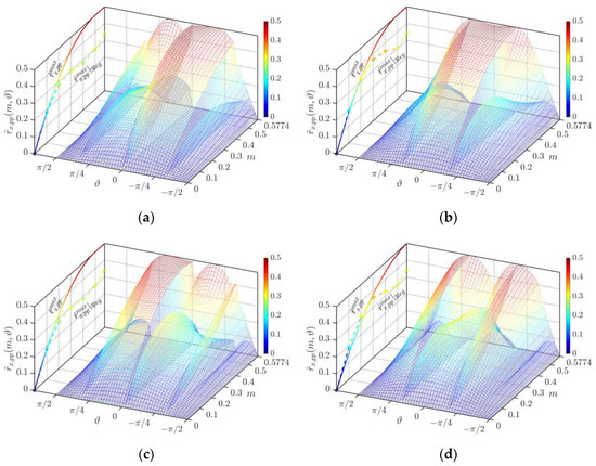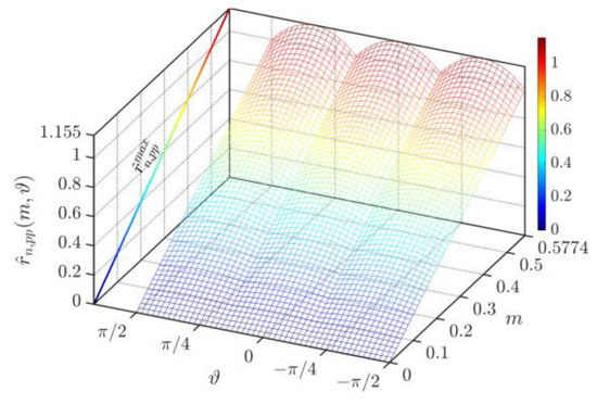 that if restricted in the interval [0, π/6] becomes equal to Equation (57). Figure 30 represents Equation (57) in a graphical way as a function of both ϑ and m.