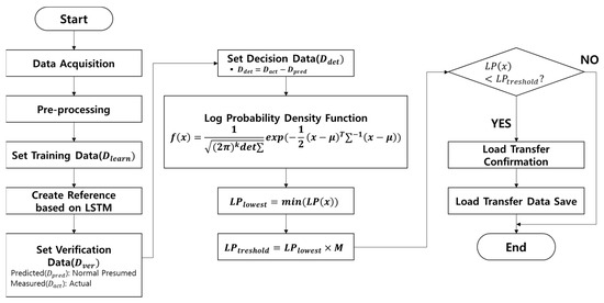 Here, : Training data, : Verification data, : Measured data, : predict data, : Load transfer decision data, : Minimum of log probability density function, : Threshold for detection of load transfer, : Weight for detection of load transfer