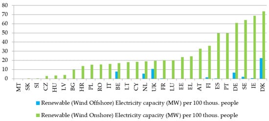 - X3—Renewable (wind offshore) electricity capacity (MW) per 100 thous. people;
