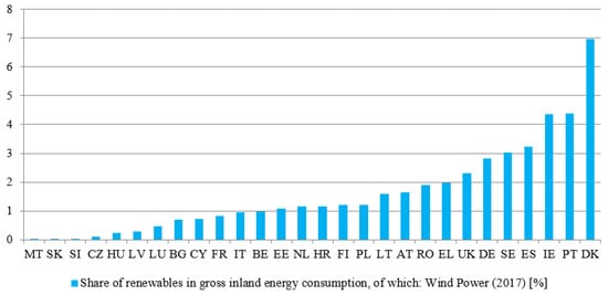 - X7—Share of renewables in gross inland energy consumption of which: wind power (2017) [%].