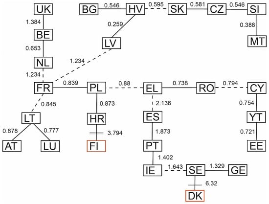 | 13 | PL-EL | 0.88 | 31 | BG-HU | 0.55 |