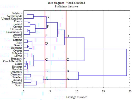 4.2. Grouping Results Using the Wroclaw and Ward’s Taxonomy Methods