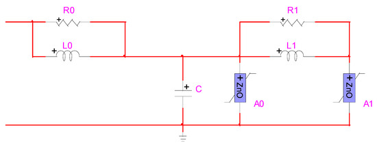In this paper, the frequency dependent behavior of the metal oxide surge arrester is modeled according to the guidelines provided by the IEEE Working Group 3.4.11 [42]. To do so, a resistor (R), inductor (L), and capacitor (C) circuit, namely RLC circuit, presented in Figure 3, is used, in which two nonlinear resistance Ao and A1 are separated by an R-L filter. The required information to simulate a surge arrester is obtained from [43] and the voltage-current (V-I) characteristics of the nonlinear resistances are derived from [42].