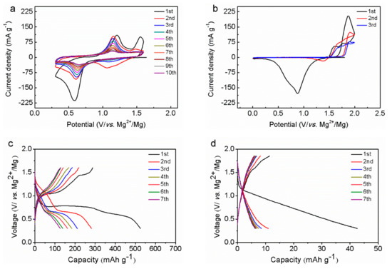 - Liu, B.; Luo, T.; Mu, G.; Wang, X.; Chen, D.; Shen, G. Rechargeable Mg-ion batteries based on WSe2 nanowire cathodes. ACS Nano 2013, 7, 8051–8058. [Google Scholar] [CrossRef]