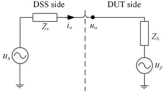 As the DUT connected to RTISS is generally an active load, and the equivalent impedance changes with the load, the commonly used method of calculating the average impedance cannot achieve real-time impedance tracking and matching. In this paper, referring to the idea of the phasor measurement unit (PMU) technology used in power system monitoring technology [25], real-time matching of the damping impedance is achieved by use of the Thevenin equivalent model to calculate the DUT side equivalent impedance.