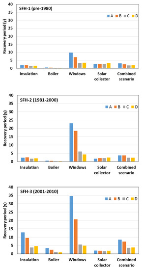 Given the long lifetime of buildings and low annual rates for new construction, the renovation of the millions of existing buildings constitutes the main driving mechanism for decarbonizing the national building stocks by 2050. Common energy conservation measures (ECM) include the addition of more thermal insulation, the replacement of low performance building elements (e.g., windows) or energy efficiency measures (EEM) that reduce energy use by replacing existing equipment with new and more energy efficient ones (e.g., boilers), and the installation of systems that exploit renewables (e.g., solar collectors), among others. However, while these measures will reduce the operational energy of the renovated buildings, from an environmental point of view, some of the resulting savings will actually be compensating for the energy used to produce the corresponding building products, e.g., thermal insulation, double-glazing windows, boiler, solar collector or other building components or systems that may be added to a building during its renovation. Accordingly, an energy recovery time will correspond to different time periods depending on the achieved building energy savings and the amount of energy used for the manufacturing of the building products used in a project.