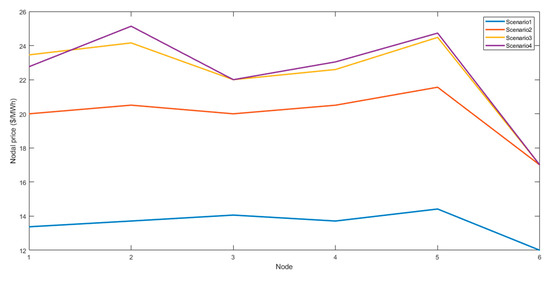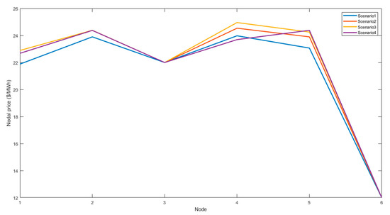 From the nodal prices, the generator’s income or the total payments of the demands are defined as the sum in all scenarios, of the product of the energy (MWh) demanded or consumed in a node by its respective LMP . The remuneration to the generators and the payment of the demands allow defining the surpluses for each one of the agents of the system.