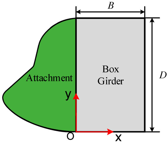 The shape of the attachment structure is determined by Equations (1)–(7), in which the parameters (B1, B2 and B3; D1, D2 and D3 and R1, R2 and R3) are determined based on the height of the box girder (D). The corresponding design parameters can be obtained according to the conversion ratio in Table 2. The coefficients in Table 2 are obtained from the profile in Figure 1.