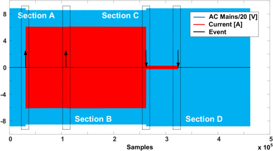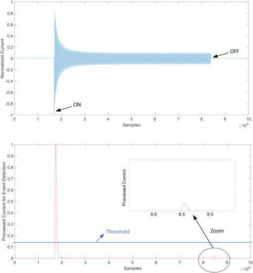 The event detection stage mainly comprises identifying the time segments in a waveform where power transients occur. As storing and processing all the captured data is neither efficient nor practical, due to the high sampling frequency (order of kHz), several methods are available to perform transient extraction from waveforms [