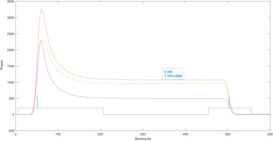 28]. For the power envelope technique, first, the envelope is analyzed, and its type is determined. Then, based on envelope type, particular features are extracted, including: (i) the duration of the transient periods; (ii) the overshoot (peak power versus stable power); (iii) the power difference between the start and the end of the transient period, and (iv) the number of semi cycles from power-on to the peak inrush power.