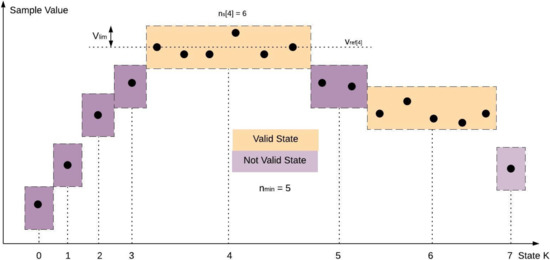For the Vectorization method, the tuning parameters imply different representations of vectors: (i) a higher value of n implies a lower number of elements in the vector; (ii) a lower value of implies in more restrict characterization of valid states, increasing the number of non-valid states. In this sense, these parameters were searched in the set and set , respectively. The same set was used for feature extraction as the detection and extraction of features are coupled in the Vectorization method.