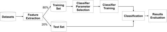 were used as a test set. Additionally, we organized ten different training and test subsets, randomly selecting a percentage of examples per load class, including all the features, aiming to obtain an average of the classification accuracy for different training and test set configurations. It is noteworthy that the indices used to organize each subset were fixed for all the feature extraction methods, i.e., the 10 subsets are the same for all comparisons.