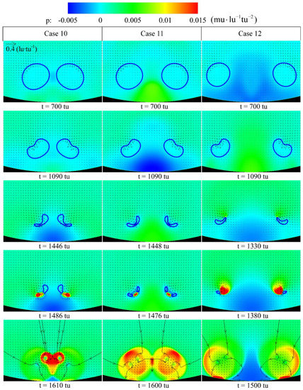 4.3. Evolution of the Double Bubbles with Vertical Arrangement