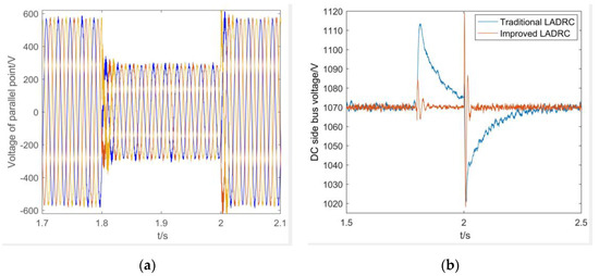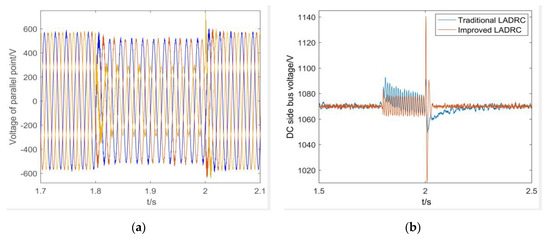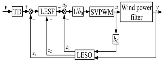 Figure 2, the role of LESO is to realize real-time estimation and compensation of external and internal disturbances. The main function of LSEF in LADRC is to generate error and differential signals, and to convert them into error integral signals, and, finally, to form control rate. The control rate is the error differential signal and error signal combination of several signals. The function of TD in the linear controller is to improve the quality of control and simplify the design of the controller. Its working principle is to extract the continuous and differential signals in the measurement signal from discontinuity or random noise.