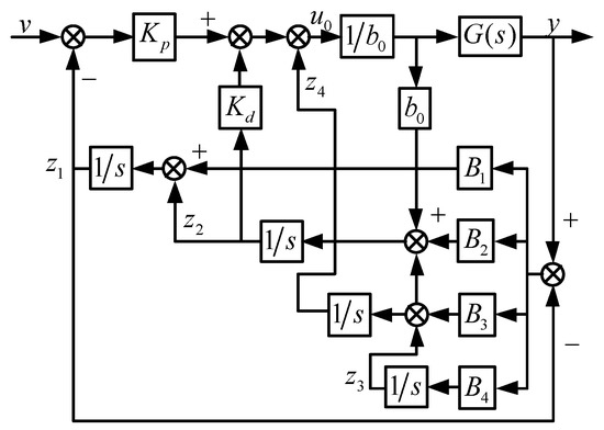 is the observed total disturbance signal. According to Equations (9), (10), and (12), it can be seen that the traditional fourth-order LADRC is shown in