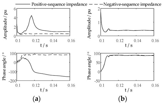 Referring to the mapping relationship between and in [29] and Equation (28), the characteristics of are shown in Figure 8. As observed, both the amplitude and phase angle of vary greatly under different conditions. Particularly, the phase angle of is between −90° and −180°, which significantly differs from the phase angle of the equivalent impedance of SG (generally regarded as 90°).