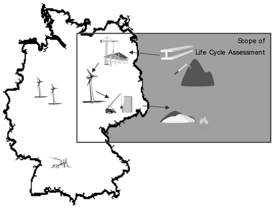 The assessed use case is intended to give an insight into the importance and significance of the consideration of the right system boundaries when integrating the results of an LCA study in an ESA with the geographical scope of Germany. In Section 3.1, the use case is described. First, the technological details are elaborated, before the data for the life cycle inventory are described. Afterwards, the assessed scenarios are introduced. Section 3.2 presents the results of the LCA study.