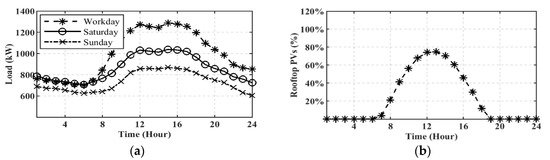Problem description: (a) Load profiles; (b) Generation profile of rooftop PVs.