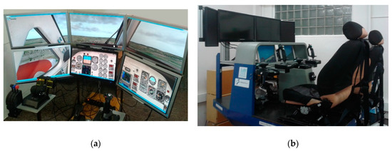 The flight simulators in use—(a) the fixed-base flight simulator and (b) the moving-base flight simulator.