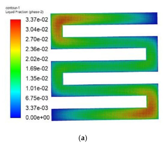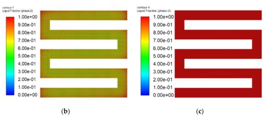 The problem of solidification and melting fluid flow within a certain temperature or temperature range can be solved by the solidification and melting model. Instead of tracking the liquid–solid boundary, the liquid–solid mushy zone is considered porous and its porosity is equal to the liquid fraction.