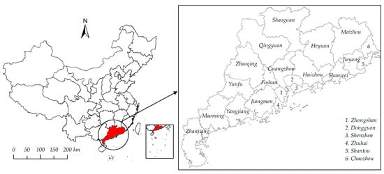- Statistics Bureau of Guangdong. Guangdong Statistical Yearbook; China Statistics Press: Beijing, China, 2001–2018. (In Chinese)