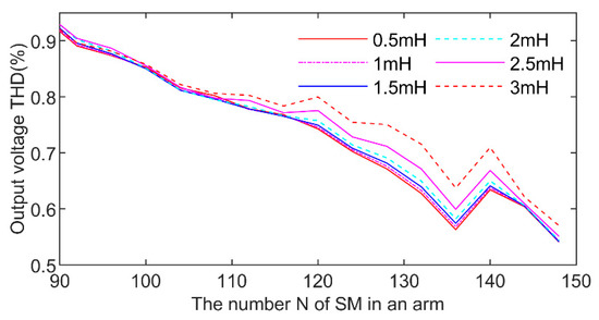 5.3. Output Voltage/Current Harmonic Performance under Different Arm Inductance and N Values