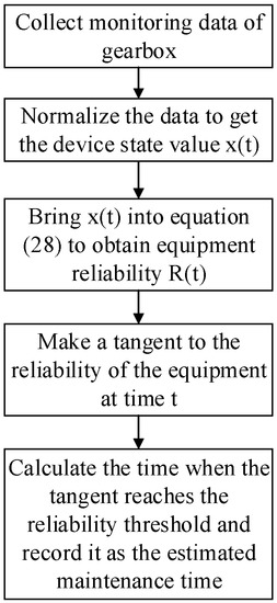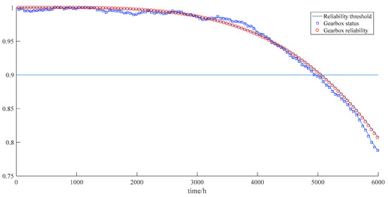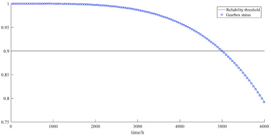 The reliability requirement of the gearbox in trouble-free operation is 0.9. Therefore, the gearbox is repaired at a reliability threshold of 0.9. When the reliability of the gearbox is less than 0.9, the equipment will be repaired.