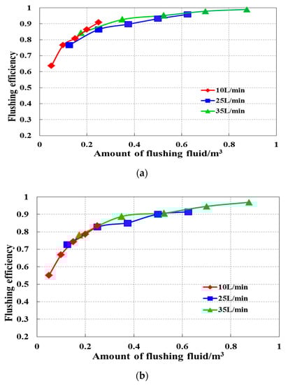 According to the flushing time and displacement in Table 4, the amount of flushing fluid can be obtained, and the relationship between the amount of flushing fluid and the flushing efficiency can be obtained, as shown in Figure 11.