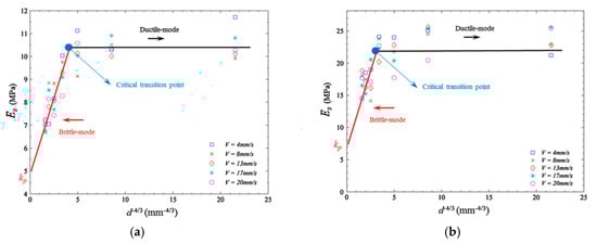 where illustrates the transition of rock cutting. Extensive laboratory experiments have been conducted by He et al. [19], Liu et al. [1], and He and Xu [20] to obtain the failure transition point of Tuffeau limestone and Savonnières limestone to validate the specific cutting energy approach. As illustrated in Figure 3, He and Xu [20] found the transition point of failure modes for two different limestone samples, respectively. However, this approach does not give accurate results when compared with experimental results and the highest number of the correlation coefficient ( is 0.82 in the fitting analysis.