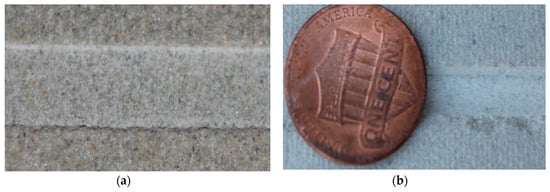 Surface roughness of Berea sandstone sample after the cutting process: (a) DOC = 0.1 mm, (b) DOC = 0.4 mm. Both pictures are sharing the same scale but roughness cannot be noticed by naked eyes.