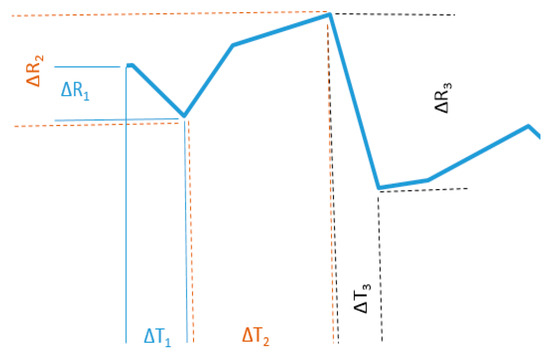 Based on the extensive scratch tests conducted in this research, the surface roughness can be realized as another method for delineating the rock cutting mechanism. It is seen that small asperities on the cut surface and long process time are characteristics of the strength-driven mode. On the contrary, the groove surface has big fluctuations over a short distance/time when the fracture-driven mode is dominant. As shown in Figure 8, and show the scratched surface altitude difference and the time difference, respectively. The ratio of and illustrates an average change in the surface roughness is defined as follows: