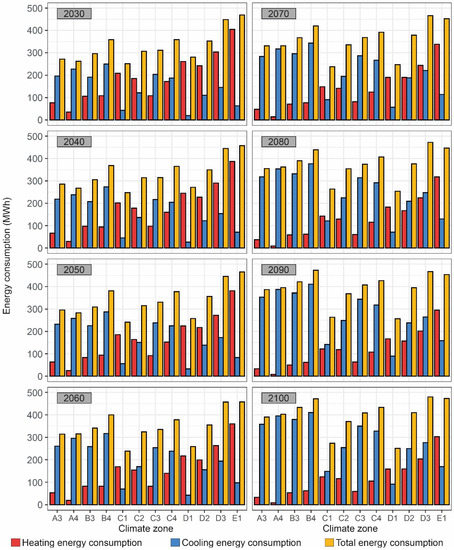 - Verichev, K.; Zamorano, M.; Carpio, M. Effects of climate change on variations in climatic zones and heating energy consumption of residential buildings in the southern Chile. Energy Build. 2020, 215, 109874. [Google Scholar] [CrossRef]