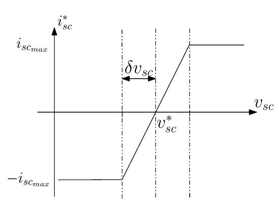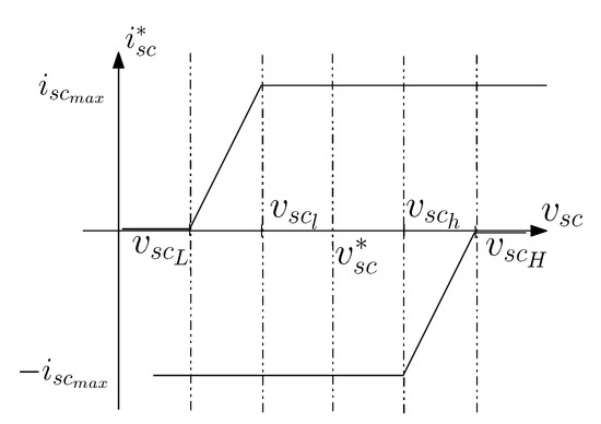 Finally, the SCs voltage fluctuates within a range . If the SCs voltage exceeds these limits, constraints are added to reduce the SCs current during charge or discharge. Figure 8 shows a specific saturation function that represent the saturation block of Figure 7.