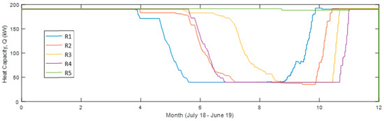 Heat capacity of each reactor unit 12 months from July 2018 in the simulation with four reactor units in use (Sim4).
