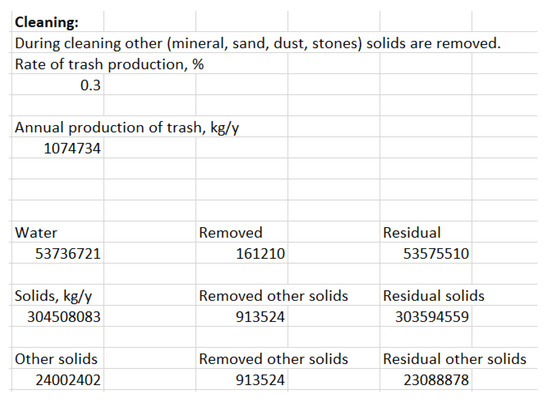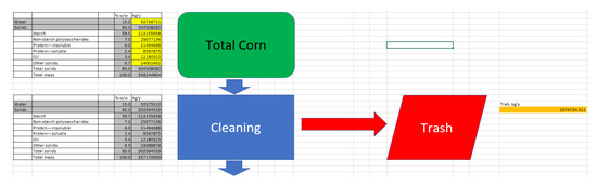 An example of the techno-economic model is given in Figure 2, presenting the part of the mass balance of the bioethanol plant.