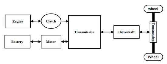 Parallel hybrid electric vehicle (HEV) block diagram.