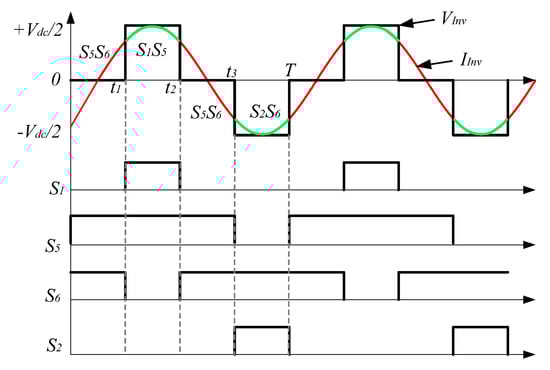 Figure 2 shows the control signal sequence of the transistor (shown for one phase), the voltage (VInv) and the inverter output current (IInv).